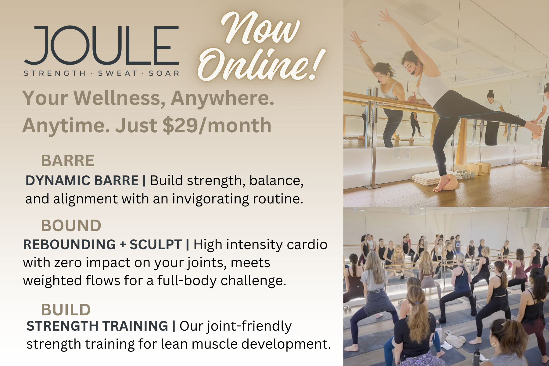 - Strength. Sweat. Soar – Every movement is intentional, every class is designed for progress, and every session brings you closer to your strongest self.